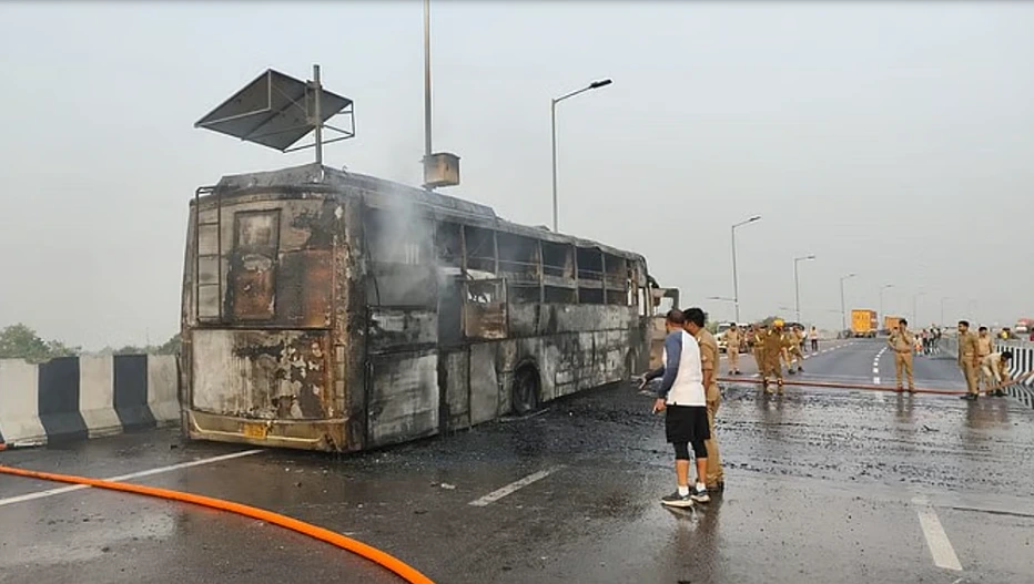 Five passengers, including two children, died after a private bus caught fire near Lucknow. Preliminary investigation suggests a short circuit; emergency exit failure reported.